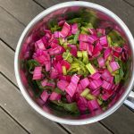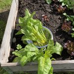 Heute habe ich mal wieder Mangold ernten können im Gemüsebeet. Ich bin immer wieder fasziniert von diesem Gemüse, dass so prächtig daher kommt. Ich finde ja, der Mangold macht beim Gemüse die schönsten Farben.