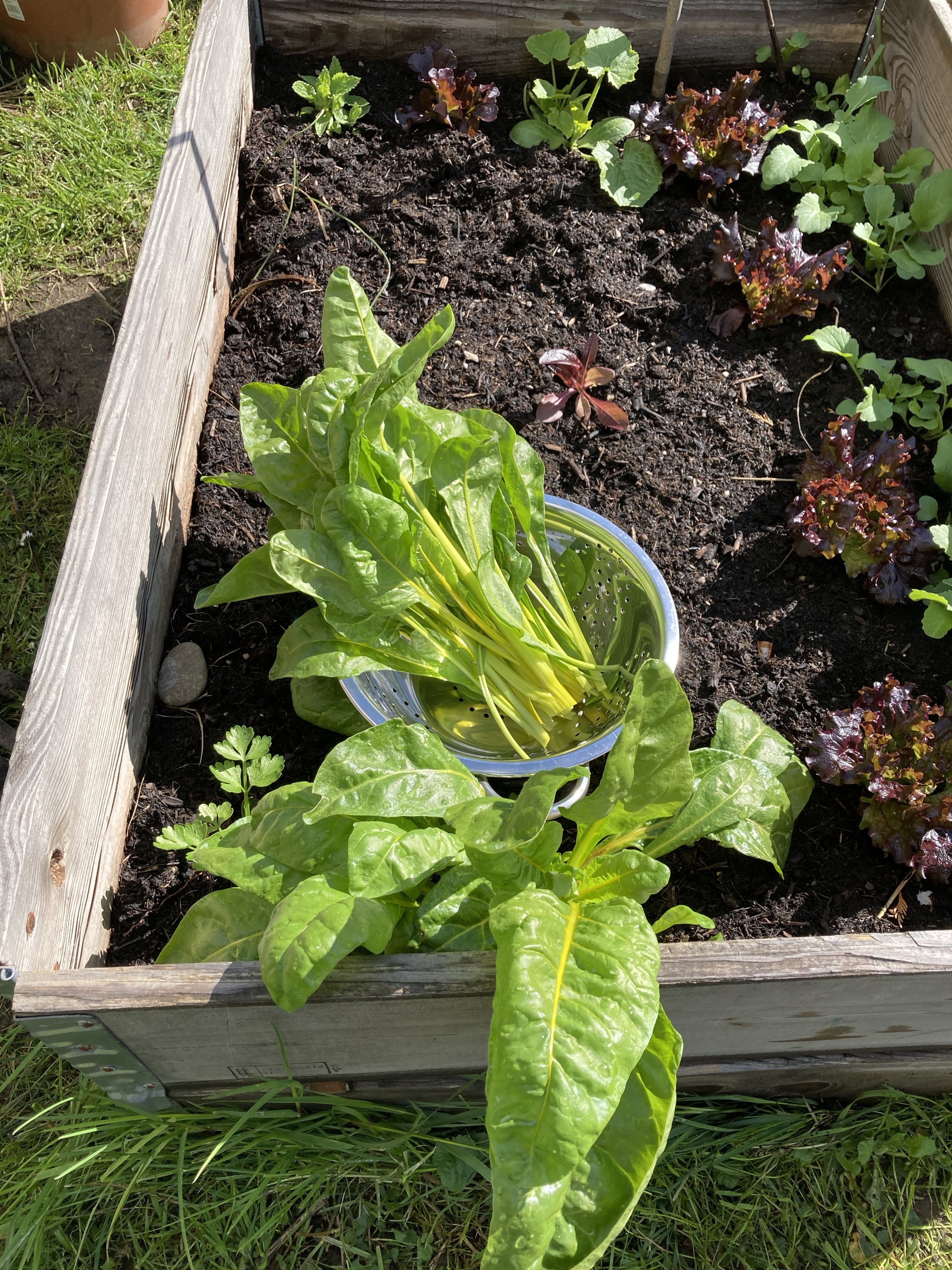 Jetzt, wo es wärmer wird, machen sich die beiden Pflanzen auf den Weg und Blüten zu treiben. Im wahrsten Sinne des Wortes. Mangold kann bis zu zwei Meter hoch werden und ziemlich ausladend. Habe ich schon einmal ausprobiert. Aber dieses Jahr nicht. Immerhin hat sich schon die nächste Generation Mangold auf den Weg gemacht. Dieses Jahr habe ich wieder rechtzeitig daran gedacht und sowohl im Haus Mangold vorgezogen und auch eine Direktsaat im Freien. Hat dieses Mal sogar funktioniert. Das klappt nicht immer.