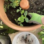 Gurken und Zucchini haben einen hohen Wasserbedarf. Für sie muss es schon eine Olla sein, wenn es um die Wasserversorgung im Balkongarten geht. Ob selbst gebaut aus zwei Tontöpfen oder gekaufte Olla – es hilft, wenn sie neben den Pflanzen eingegraben werden. Bis zur Halskrause sitzen sie dann in der Erde. So versorgen sie die nähere Umgebung mit Wasser.