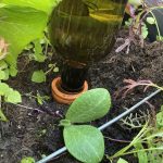Tipp: Drückt zuerst die Tontülle OHNE die Flasche in die Erde und setzt dann die mit Wasser gefüllte Flasche. Meine erste Tontülle habe ich gleich mal zerstört, als ich sie mit der Flasche in die Erde drücken wollte.