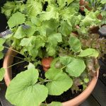 Ganz wichtig: Wer wie ich eine Südterrasse hat, muss unbedingt für Schatten sorgen! Wenn ich bei Sonnenschein über die Terrasse laufe, brennen mir die Fußsohlen. Bei so einer Hitze überlebt keine Pflanze im Topf. Es muss ein Sonnensegel über die Terrasse. Bei einem hellen Segel kommt noch genügend Licht für das Pflanzenwachstum. Jetzt nur noch Daumen drücken, dass uns die 40° C erspart bleiben. Dann gibt es eine gute Ernte im Kübelgarten.