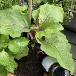 In meine 50 cm Pflanzkübel (40 l – 60 l Volumen) setze ich eine 2 Lieter Olla. Darum herum können zum Beispiel 4 Gurken Pflanzen gesetzt werden. In Pflanztöpfe mit 40 cm (25 l -35 l Volumen) setze ich ein kleine Olla mit knapp 1 Lieter. Sie versorgt dann zum Beispiel eine Tomate und eine Chili Pflanze. Zusätzlich wird die Erde abgemulcht, das heißt bedeckt. So verringert sich die Verdunstung. Zusätzliches Gießen ist aber gerade in sehr heißen Phasen trotzdem nötig.
