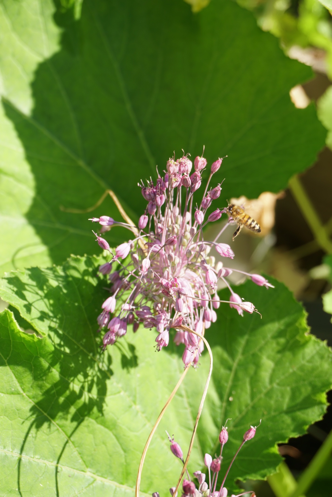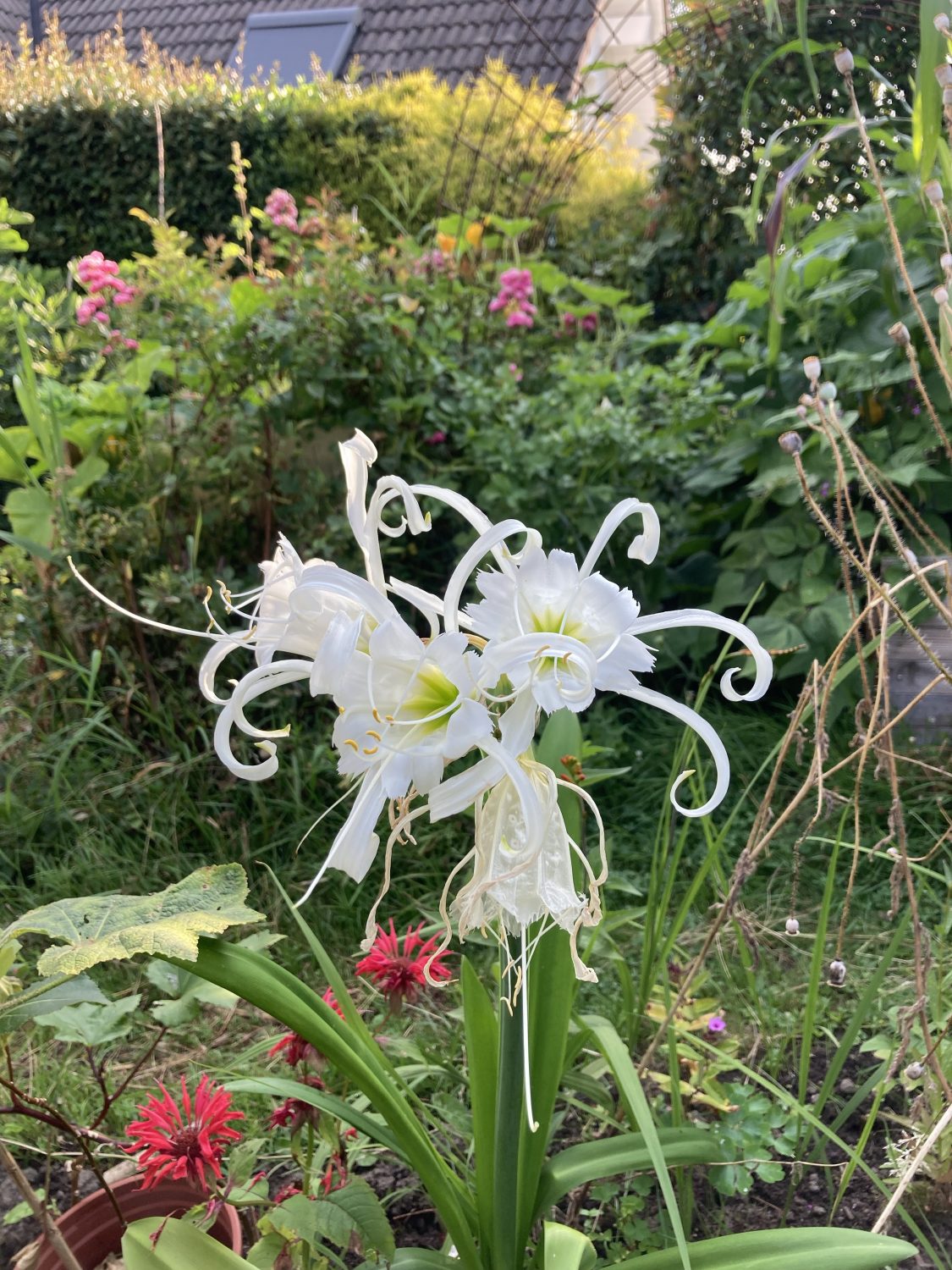 Dafür sehe ich die überaus prächtige Ismene im Blumenbeet, den zarten Seidenmohn, durch den sich gerade eine hungrige Biene wühlt und die Blüten des Kieler Lauch. Eine wahre Rarität, welche da zur Zeit in meinem Garten blüht. Und da wächst doch tatsächlich ein Malerbaspinat Setzling. Den hatte ich vollkommen in seinem Töpfchen vergessen. Jetzt steht er besser da, als all die anderen, bereits gepflanzten Setzlinge. Tja, so kann es gehen.