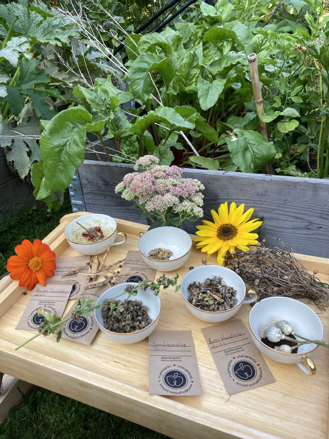 Übrigens auch Samen von Blumen, welche nicht aus meinem Garten stammen. Die ersten Samen vom Blutweiderich habe ich auf einer Wiese vor unserem Heimatort gesammelt. Die Samen für den Kugelamaranth stammen aus einem Blumenstrauß einer örtlichen Gärtnerei. Inzwischen bevölkern beide Blumensorten fast den gesamten Garten – ich liebe es.