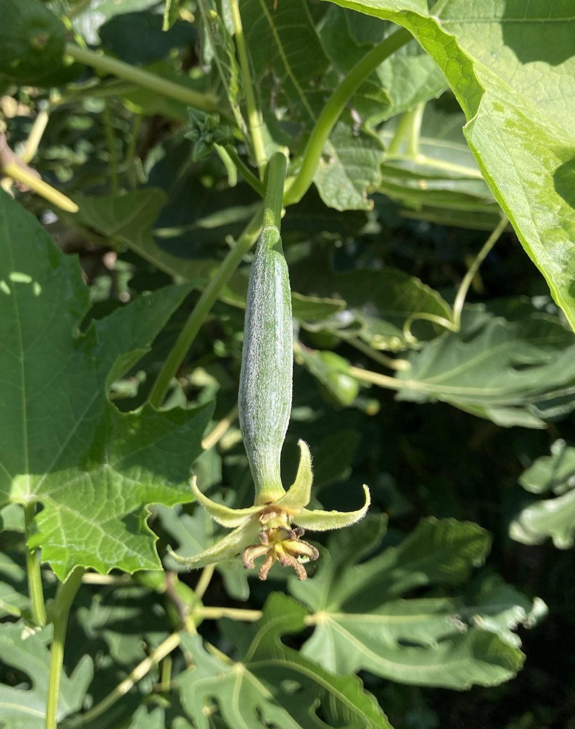 Bisher habe ich den Luffa immer nach draußen gepflanzt. Doch das hat nie funktioniert. Entweder es war zu heiß. Oder wie im letzten Jahr viel zu kühl. Immerhin hatte ich schon Fruchtansätze und die männlichen Blüten. Ich war also auf dem richtigen Weg, nur die warme Vegitationsphase hat einfach nicht ausgereicht. Bevor die Gurken ausreifen konnten, wurde es wieder zu kühl.