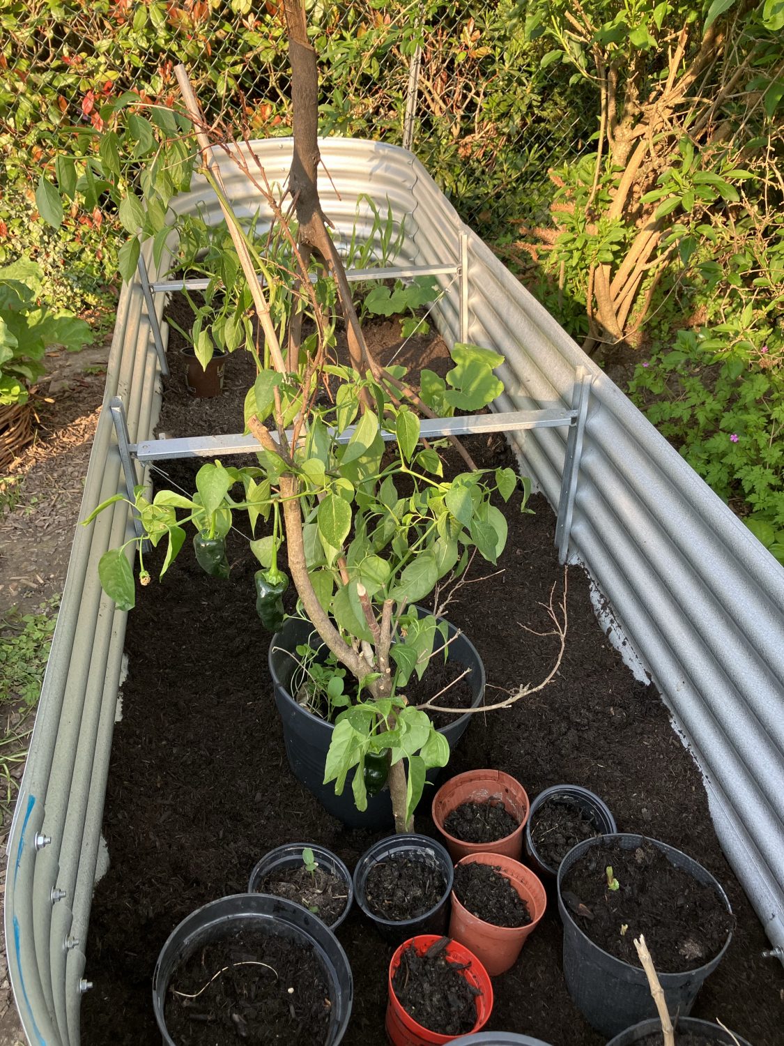 Stangenbohnen und Buschbohnen sind auch schon in die Erde gelegt worden. Aber ich komme noch mit zwei Runden an Bohnen Aussaat, bis ich auch hier eine ausreichende Ernte einfahren kann. Ja, der Mai ist knackig und noch nicht vorbei.