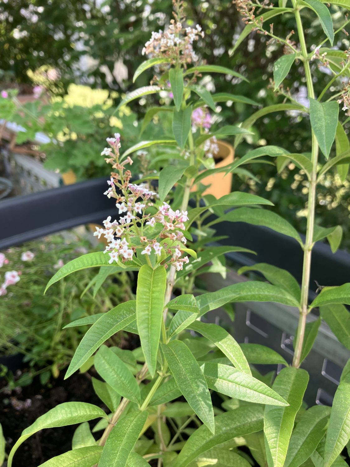 Ganz oben nochmal eine Aubergine, eine Zitronenverben, Chili, Sauerklee und eine weiter Blume.