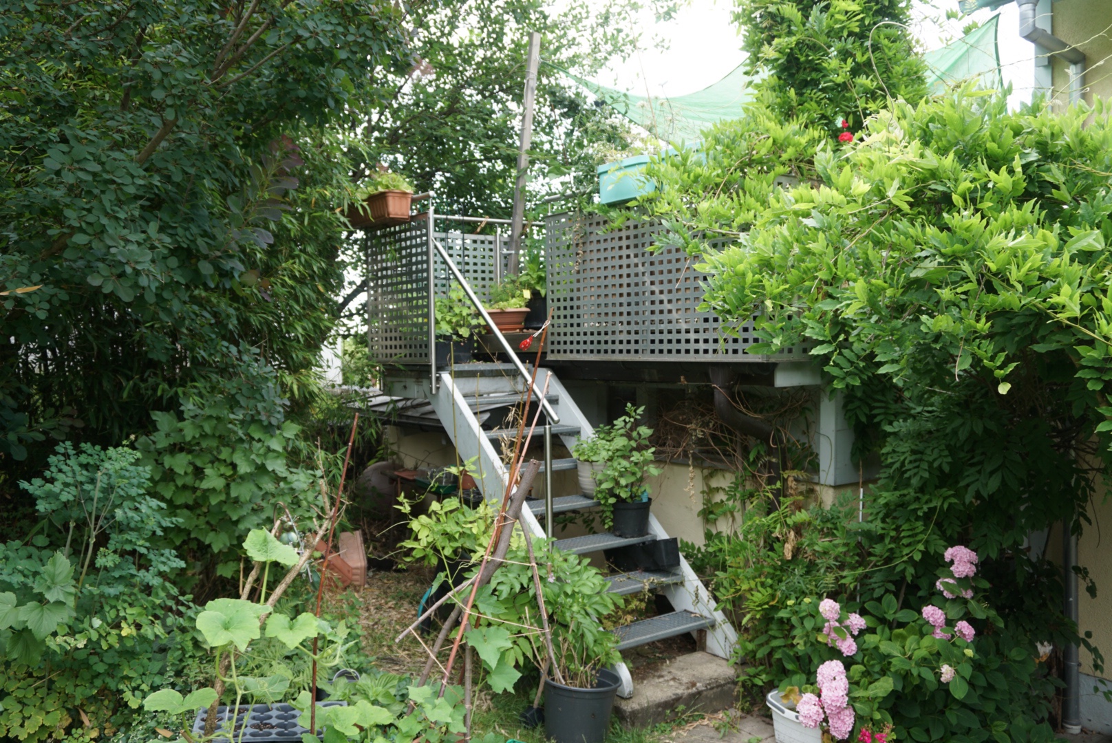 Dichter Bewuchs und Abschattung hilft ein kühleres Mikroklima zu erzeugen. Eine Abkühlung, welche Mensch, Tier und Natur hilft besser durch die Hitzesommer zu kommen. Dieser Effekt gilt gleichermaßen für Garten und Balkon. Das kann ich eindeutig bezeugen.