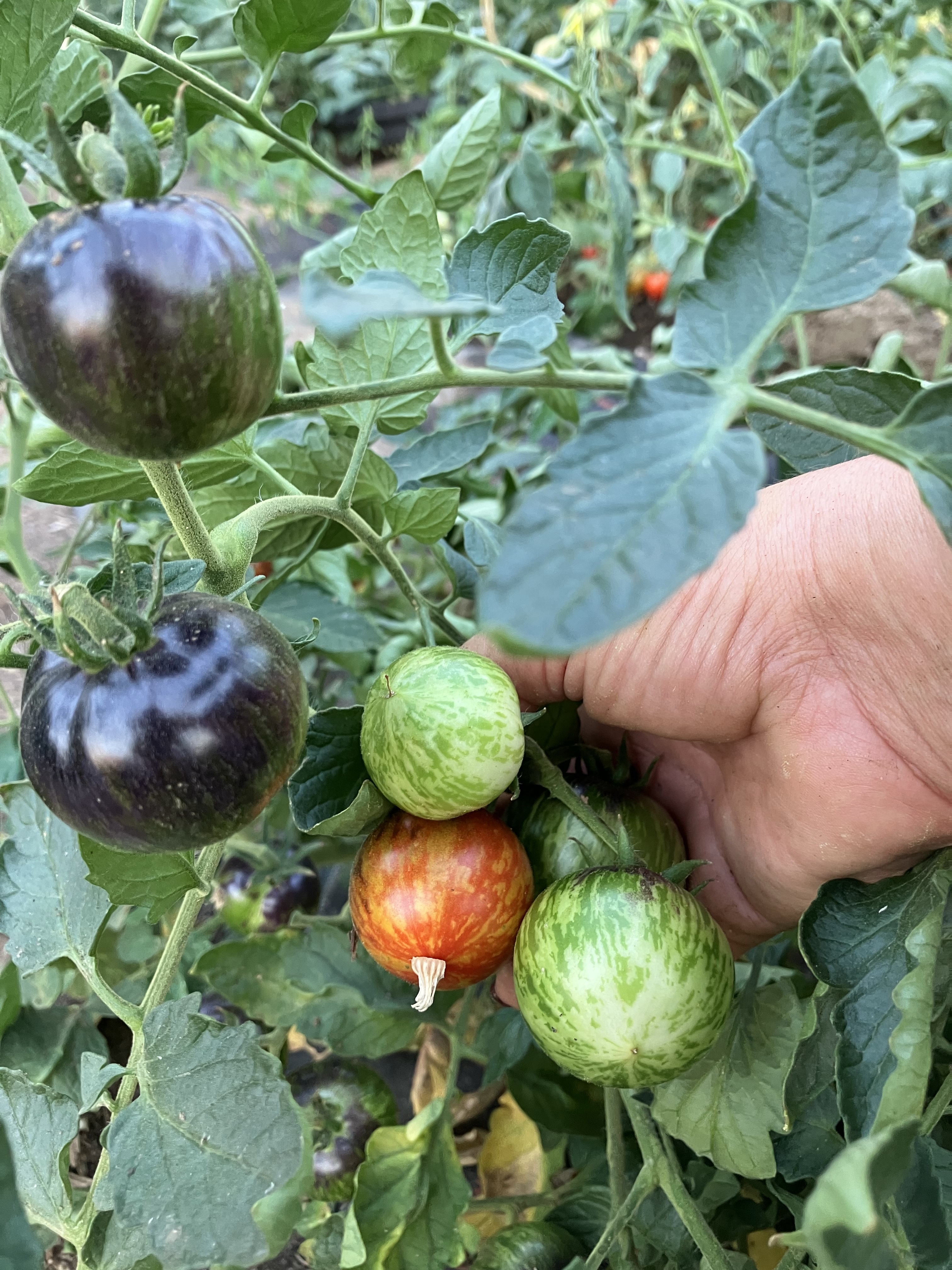Endlich kann ich meiner Tomaten Leidenschaft so richtig frönen. 70 Pflanzen finden Platz in 4 Reihen. Alle natürlich selbst gezogen. Die Hälfte des Saatgut habe ich von einer Tomatenflüsterin. So wachsen hier neben meinen bewährten Sorten auch etliche neue, faszinierende Früchtchen. Ist das schön mal richtig Platz zu haben.