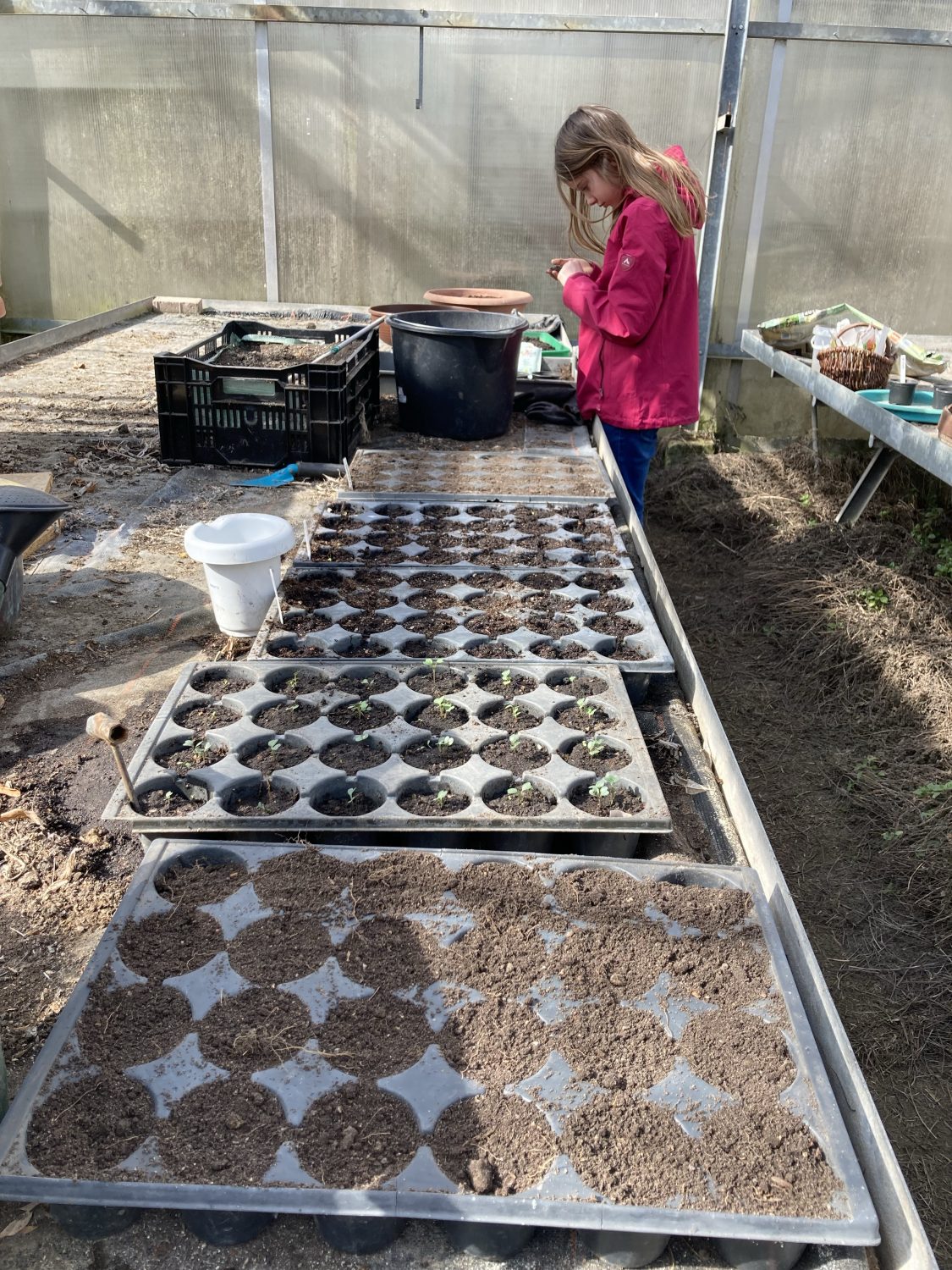 Für die Anzucht von Blumen und Kohl war das Gewächshaus schon mal ein Segen. Zinnien, Schmuckkörbchen, Sonnenblumen, alle möglichen Kohlsorten, Mangold und Pflücksalate waren hier viel einfacher zu ziehen. Bis Mitte Mai drängelten sich hier viele Setzlinge, alles für die Selbstversorgung. Doch für die Sommersaison sind nur Tomaten Pflanzen in das Gewächshaus gezogen.