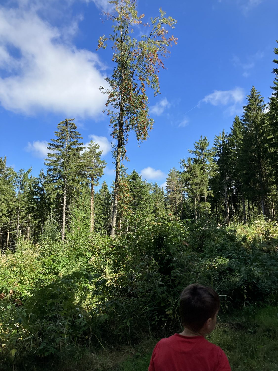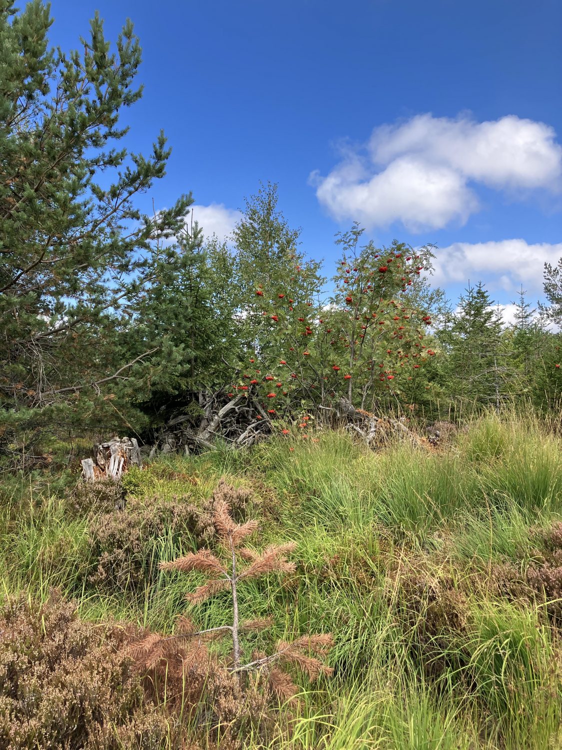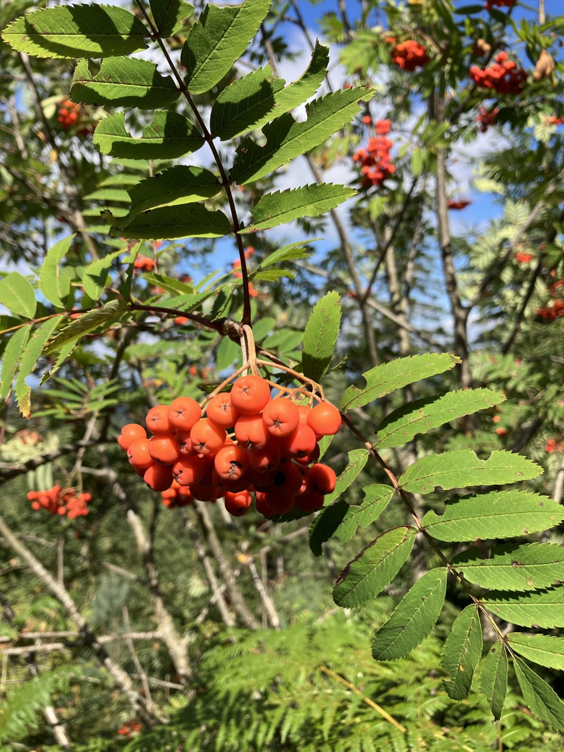 Ich habe auch fleißig über meine Freude und den schönen Spaziergang gepostet. Tja, um dann eines Besseren belehrt zu werden. Die schönen Bäume mit den roten Beeren sind Ebereschen (Sorbus aucuparia), auch bekannt als Vogelbeeren. Meine Enttäuschung über diese Information war sehr groß. Nicht, weil ich danebenlag – Bäume sind einfach nicht mein Spezialgebiet. Es macht mich traurig, dass es doch kein geschütztes Refugium für Eschen ist, in dem sich das Eschentriebsterben nicht ausgebreitet hat. Irgendwie hatte ich die Vorstellung, dass hier die Natur noch in Ordnung oder wieder in Ordnung gekommen ist.
