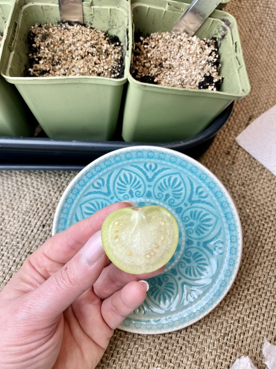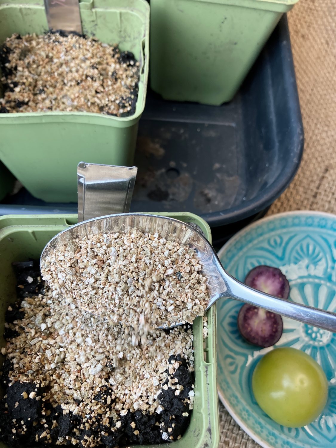 Ob das Tonmineral Vermiculit nachhaltig ist, konnte ich trotz Recherche nicht eindeutig heraus finden. Auch wachsen die Tomatillo gut ohne einer Vermiculite Schicht, wenn man die Trauermückle in Schach halten kann.