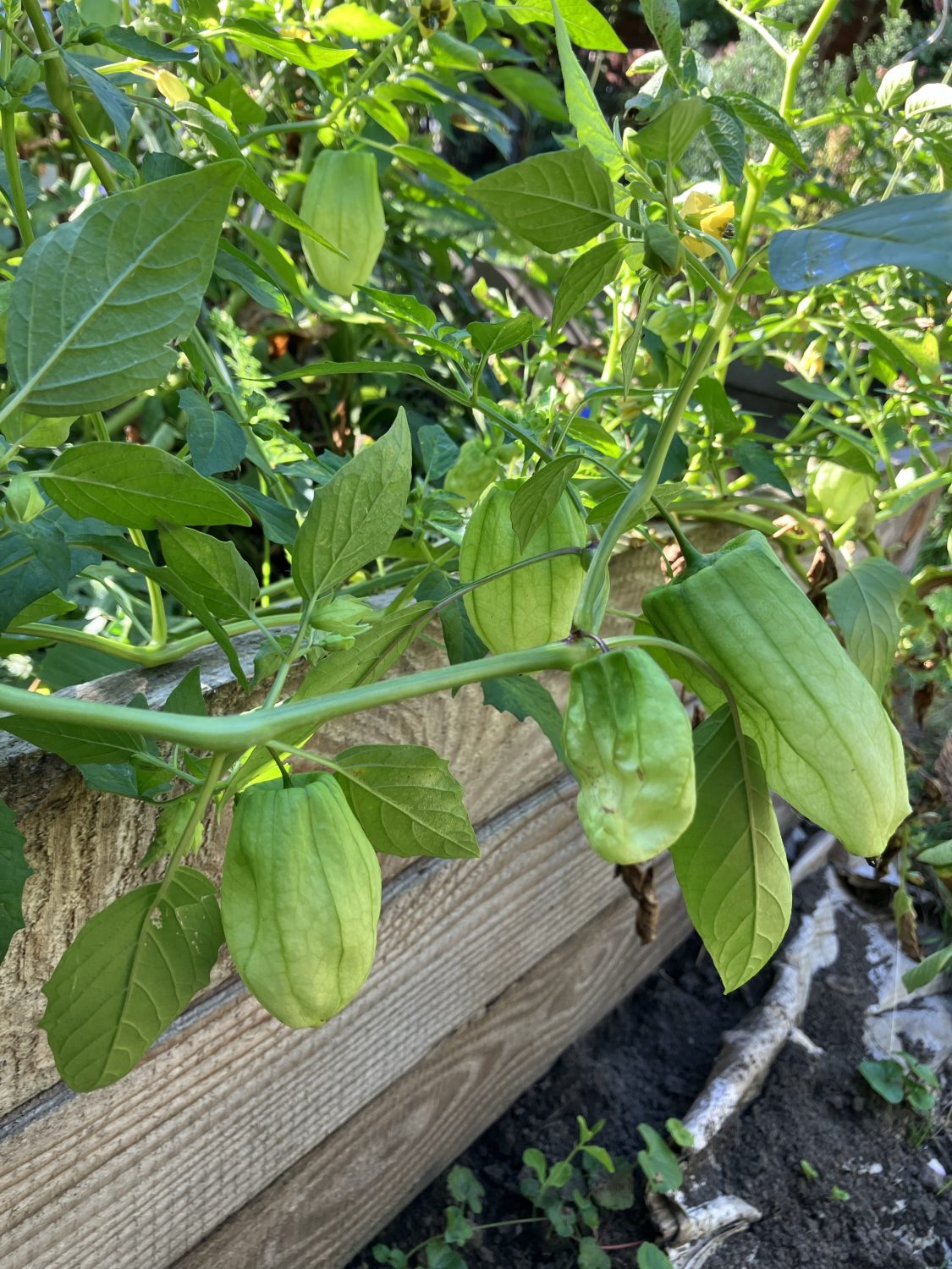 Eine weitere längliche Variante ist die Tomatillo „Chupon de Malinalco“. Sie wird etwas größer und auch die Pflanzen sind wüchsiger. Ihr Geschmack ist eher wie eine fruchtige Paprika – der Begriff „gemüsig“ ist schon mal auf Instagram gefallen. Nicht süß, aber sehr lecker auf einem Brot mit würzigem Streichkäse.