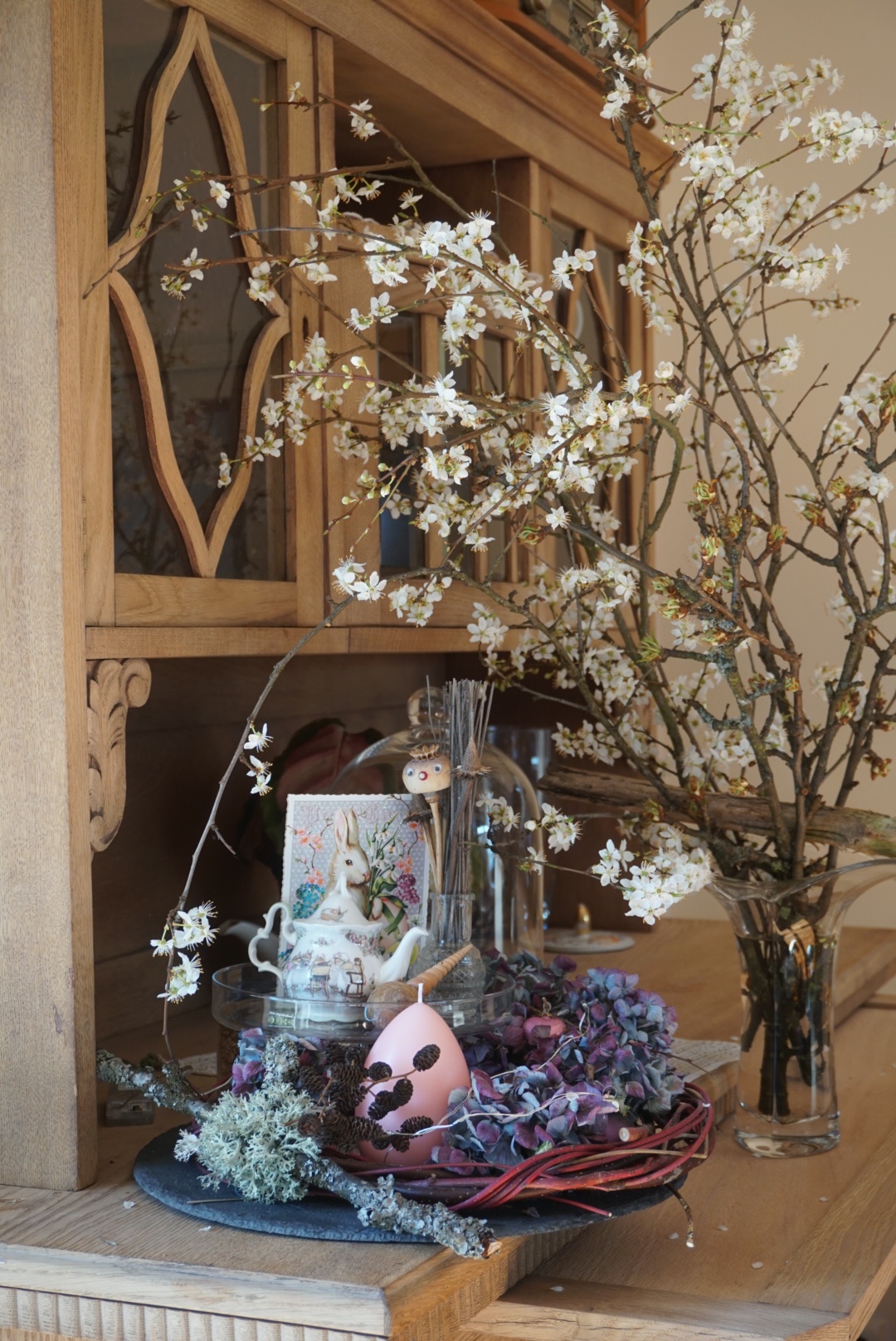 In unserem gesamten Haus finden sich kleine Trocken Gestecke in Vasen und Flasche, Kränze und knorrige Zweige. Dekorieren mit Naturmaterialien – das mache ich so lange wie ich mich erinnern kann. Zu Ostern kommen die ersten Narzissen ins Haus und Eier werden mit getrocknenten Blüten verziert. Ganz besonders wichtig ist mir die Deko zu Halloween. Je knorriger und skuriler, desto besser.