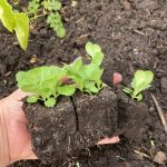 Haben die Salatsetzlinge eine Größe von rund 8 cm erreicht, werden sie vereinzelt. Je nach Platz, Schneckenbedrohung oder auch Wetterlage kommen sie direkt ins Beet oder in 9er Töpfchen als Zwischenstation.