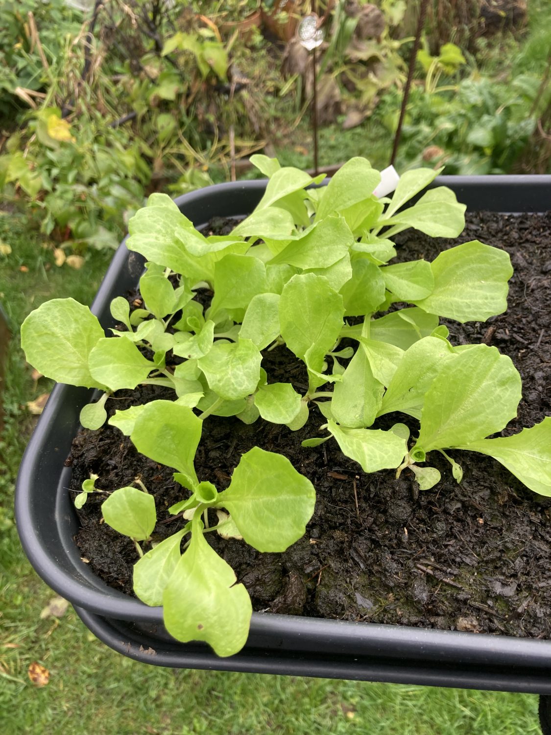 Haben die Salatsetzlinge eine Größe von rund 8 cm erreicht, werden sie vereinzelt. Je nach Platz, Schneckenbedrohung oder auch Wetterlage kommen sie direkt ins Beet oder in 9er Töpfchen als Zwischenstation.