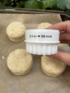 Die Scones werden bei 200° C mit Ober- und Unterhitze für 20-25 Minuten gebacken, bis sie goldbraun sind und ihre Höhe verdoppelt haben.