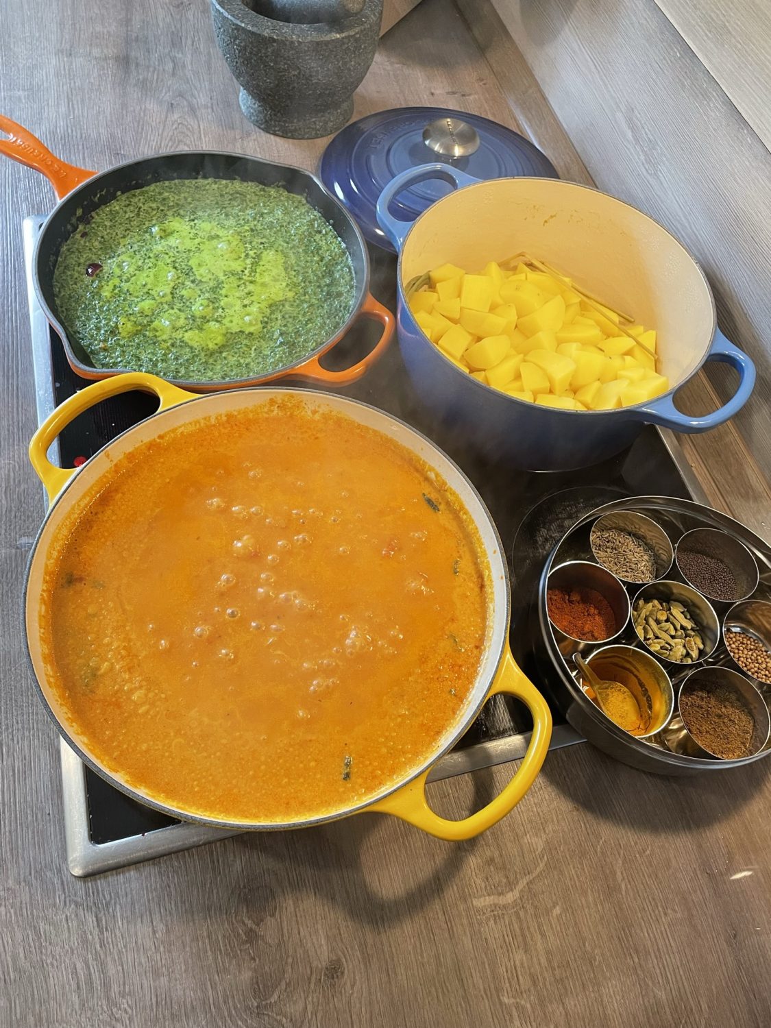 Ein „Dal“ aus Hülsenfrüchte, ein Spinatgericht mit eine Art Halumi – „Palak Paneer“, Kartoffeln mit Ghee – das ist geklärte Butter – und natürlich ein Curry auf Tomatenbasis. Was ich noch am indischen Essen liebe? Ich kann ganz viele der verwendeten Gemüsesorten im eigenen Garten anbauen und ernten. Sei es ein Dal mit Kürbis und Blumenkohl. Oder ein Tomaten Curry.