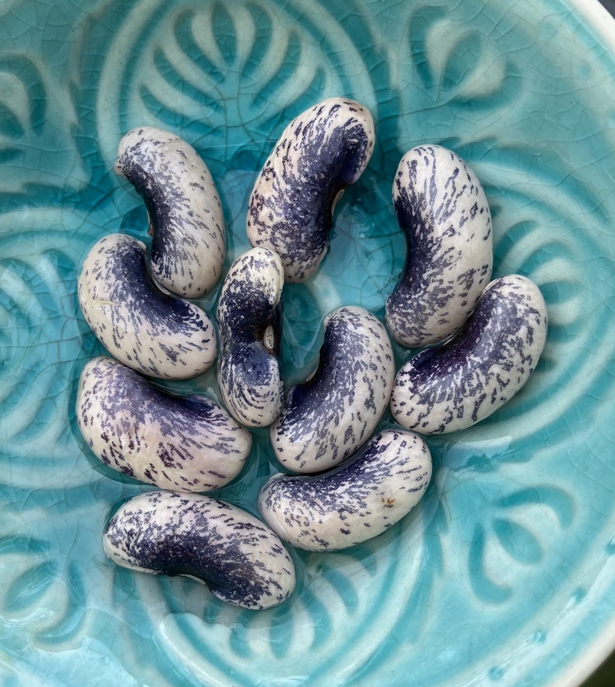 Immer wieder war ich auf der Suche nach den weiß-blauen Bohnenkerne der „Veitch“. Vergebens! Wie ich heute weiß, lag es auch daran, dass diese Buschbohne im Englischen „Veitch Wonder“ heißt. Im Spätherbst 23 habe ich sie endlich gefunden. Bei einem passionierten Gärtner in Kanada. Zum Glück haben wir mit Kanada das Handelsabkommen CETA. Aus UK hätte ich mir die Bohnen nicht (mehr) schicken lassen können.