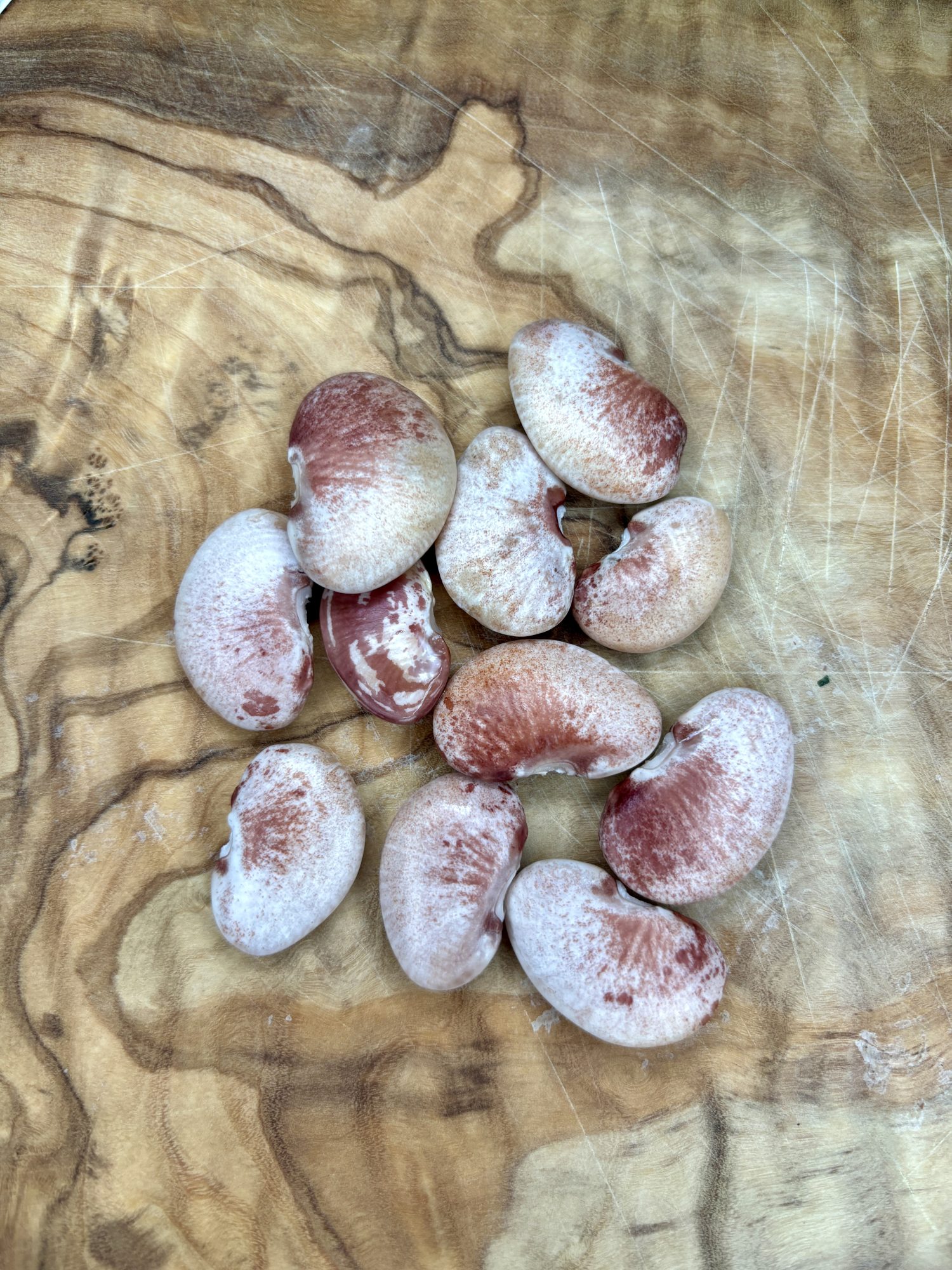 In den letzten Jahren hat sich meine Liebe zu den Bohnen gewandelt. Weg vom Verzehr, hin zu einer ausgeprägten Sammelleidenschaft von Bohnen Raritäten. Den Anfang hat vor Jahren die „Monstranz“ Bohne (Phaseolus vulgaris) gemacht. Diese rote Zeichnung rund um den Nabel auf der ansonsten weißen Bohne ist faszinierend.