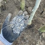Deshalb der Arbeitsauftrag: Grasnarbe und Unkraut entfernen und mehrere Hand voll Hornspäne rund um die Bäume einarbeiten. Ja, ich habe auch wirklich Hornspäne gestreut und eingearbeitet. Die organische Düngung – nur mit Kompost – hatte offensichtlich nicht ausgereicht.