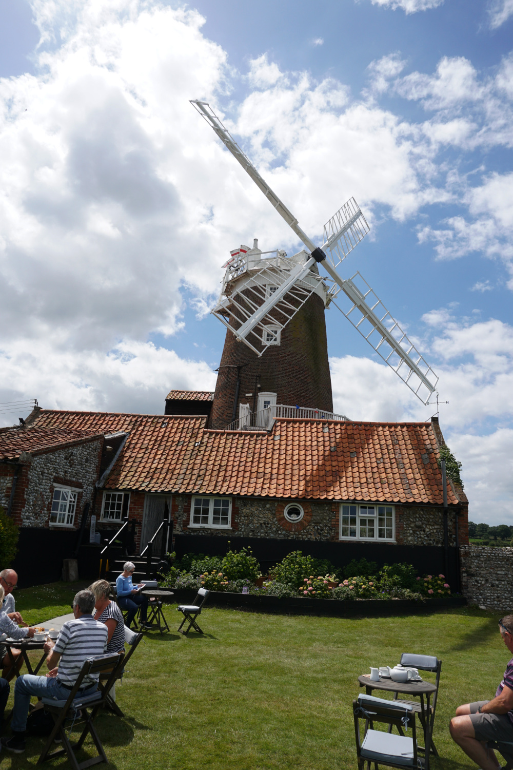 Nun aber zum Tag der offenen Gärten in „Cley next the Sea“, Norfolk. Dieses pitoreske Küstenörtchen liegt an einer Nordsee Marschlandschaft. Die Marsch ist mit natürlichen Kanälen durchzogen, welche zweimal am Tag trocken fallen. Bis zur offenen See sind es knapp 3 km vom Harbour/Hafen. Trotzdem bestimmt das Meer die Szeneri in und um die Gärten der alten Steinhäuser. Cley next the Sea ist inzwischen ein Touristenörtchen. Einheimische wohnen hier nur noch wenige. Dafür viele englische Ruheständler mit Geld.