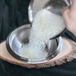 - Genau auf die Mengenangaben achten auf der Verpackung der Knetseife. Bei der Seife von Createc werden pro 100 g Knetseife 30 ml Flüssigkeit und 1 El Öl verwendet.