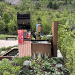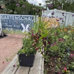 Es wurde dann Anfang Juli, bis zu meinem nächsten Besuch. Im Juli sieht das Tal-X ganz anders aus. Die Blumenbeete sind noch bunter. Zinnien, Spinnenblumen, Hirse, Löwenmäulchen uvm. strahlen in knalligen Farben. Das Gemüse wird reif und die vielen Installationen sind eingebettet in sattem Grün. Zwischen den Themengärten gibt es viele, tolle Installationen. Mein persönliches Highlight ist ein Kunstprojekt aus – ich nenne es mal – klingenden Wandelgängen. Unbedingt ausprobieren.