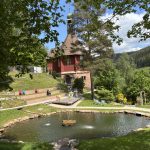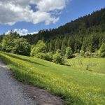 Alternativ gibt es einen wieder 1,5 km langen Weg, der Bergab nicht ganz so beschwerlich ist. Wieder vorbei an idyllischen Landschaften und roten Schuhen. Eigentlich ist der Besuch dieser Gartenschau mehr eine Schwarzwaldwanderung. Mit dem Wissen und gut vorbereitet kann aber auch sie absolut genossen werden.
