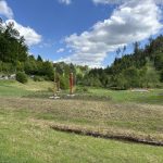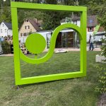 Weiter geht es zum Gartendorf. Dafür geht es wieder rund 2 durch das Forbach Tal. Der Weg führt entlang der blauen Meile und ist die die meiste Zeit schön schattig. Auch für Rastmöglichkeiten ist gesorgt. Unterhalten wird mit weiteren Kunstprojekten.