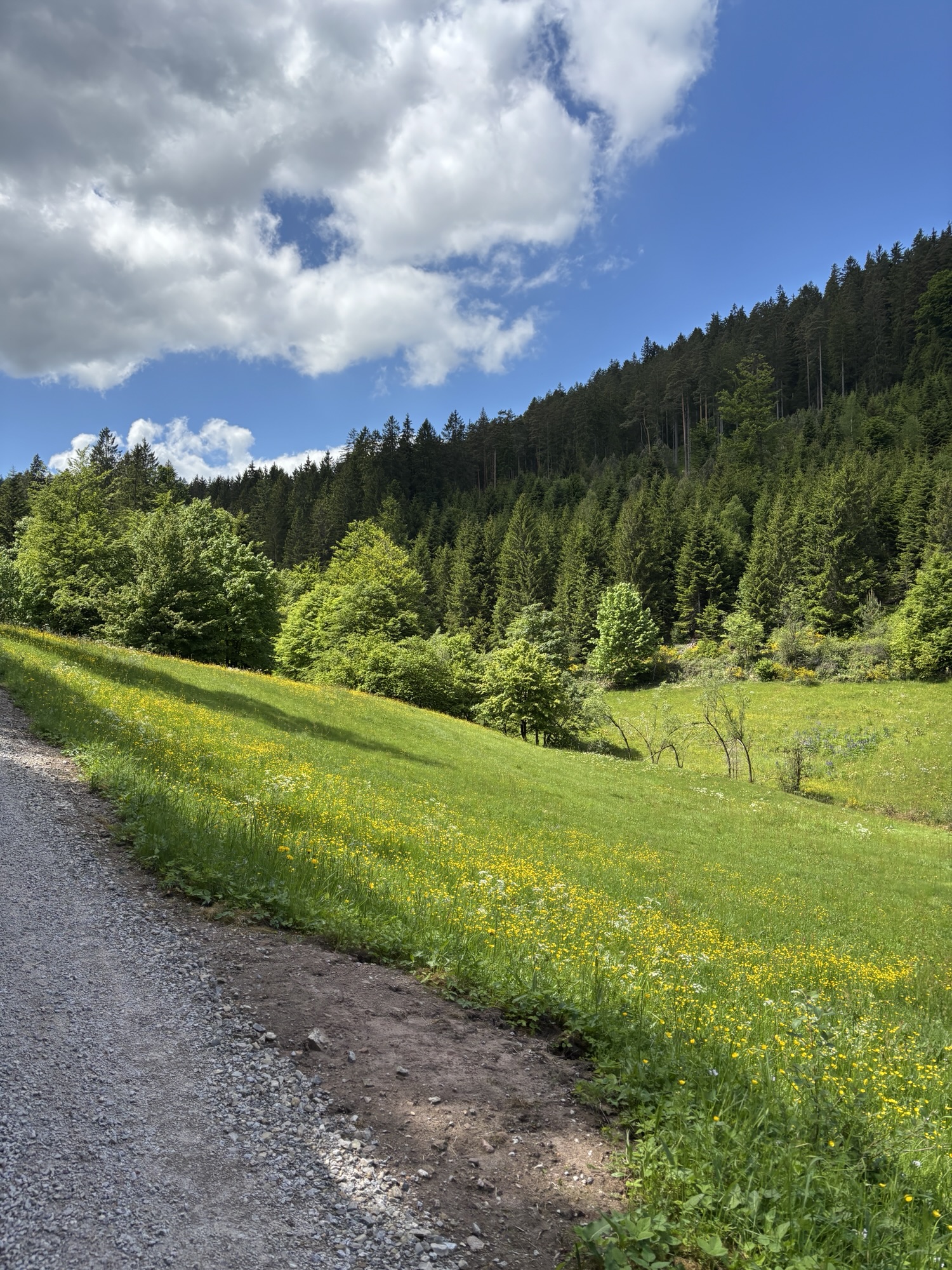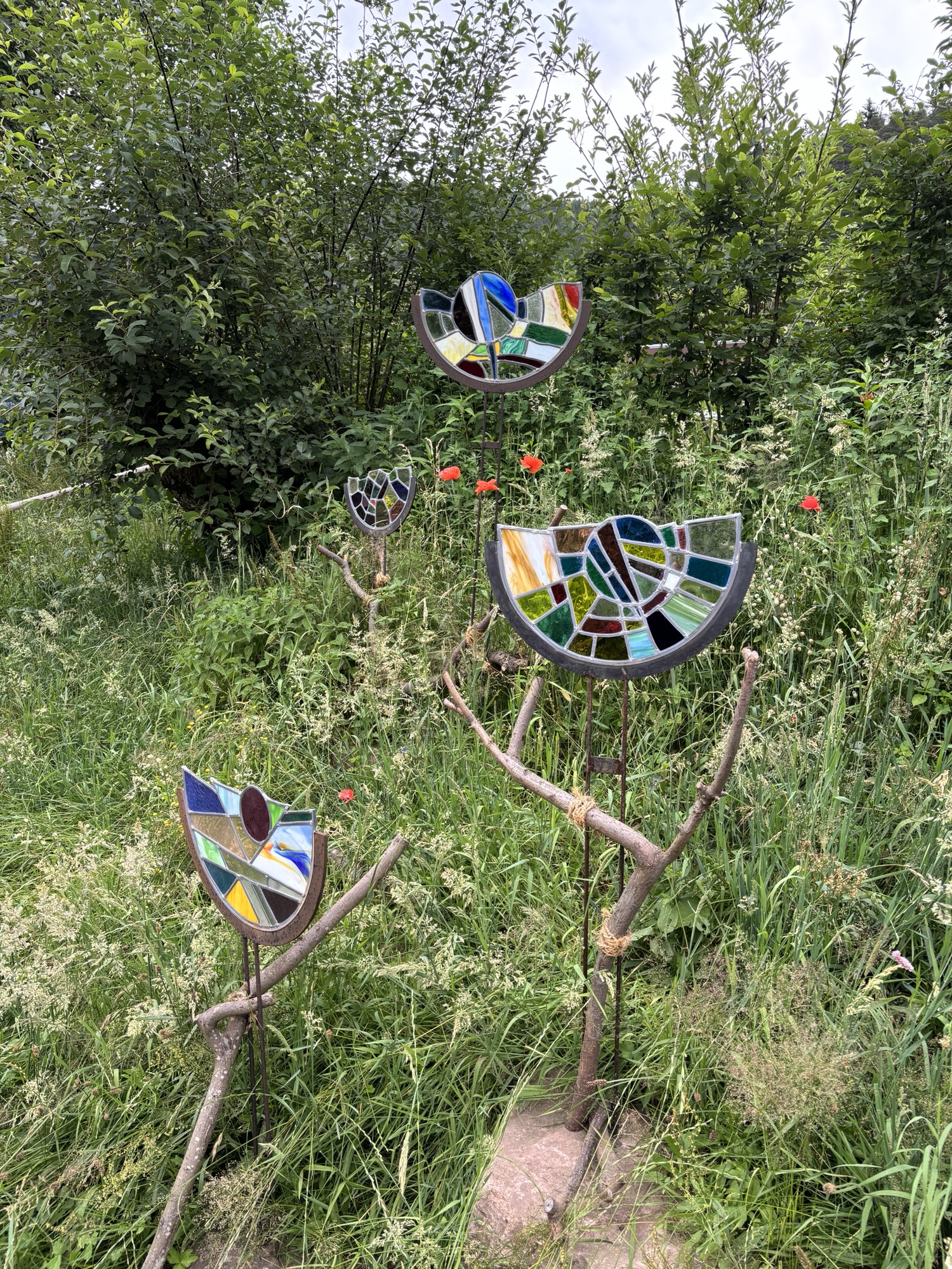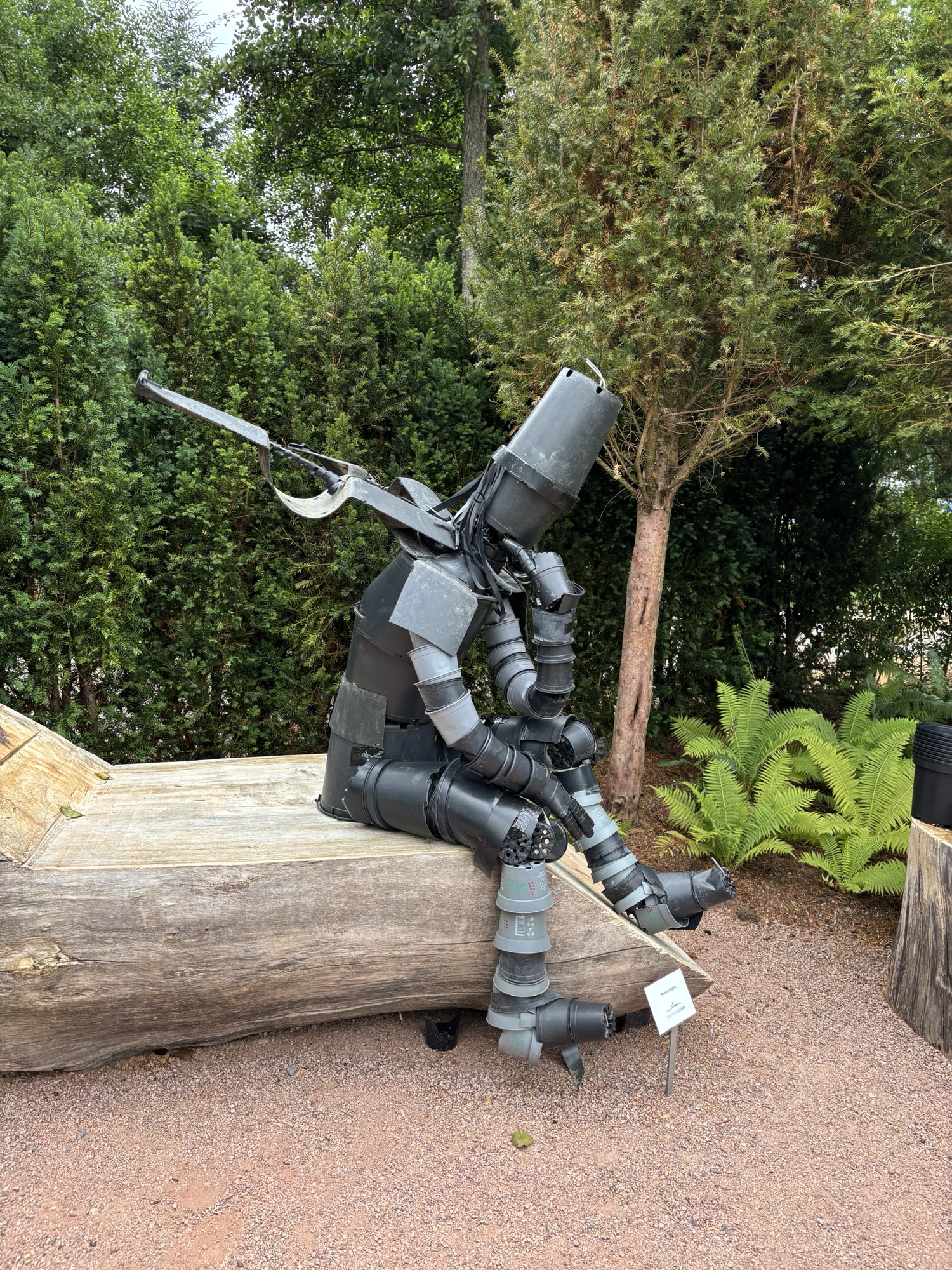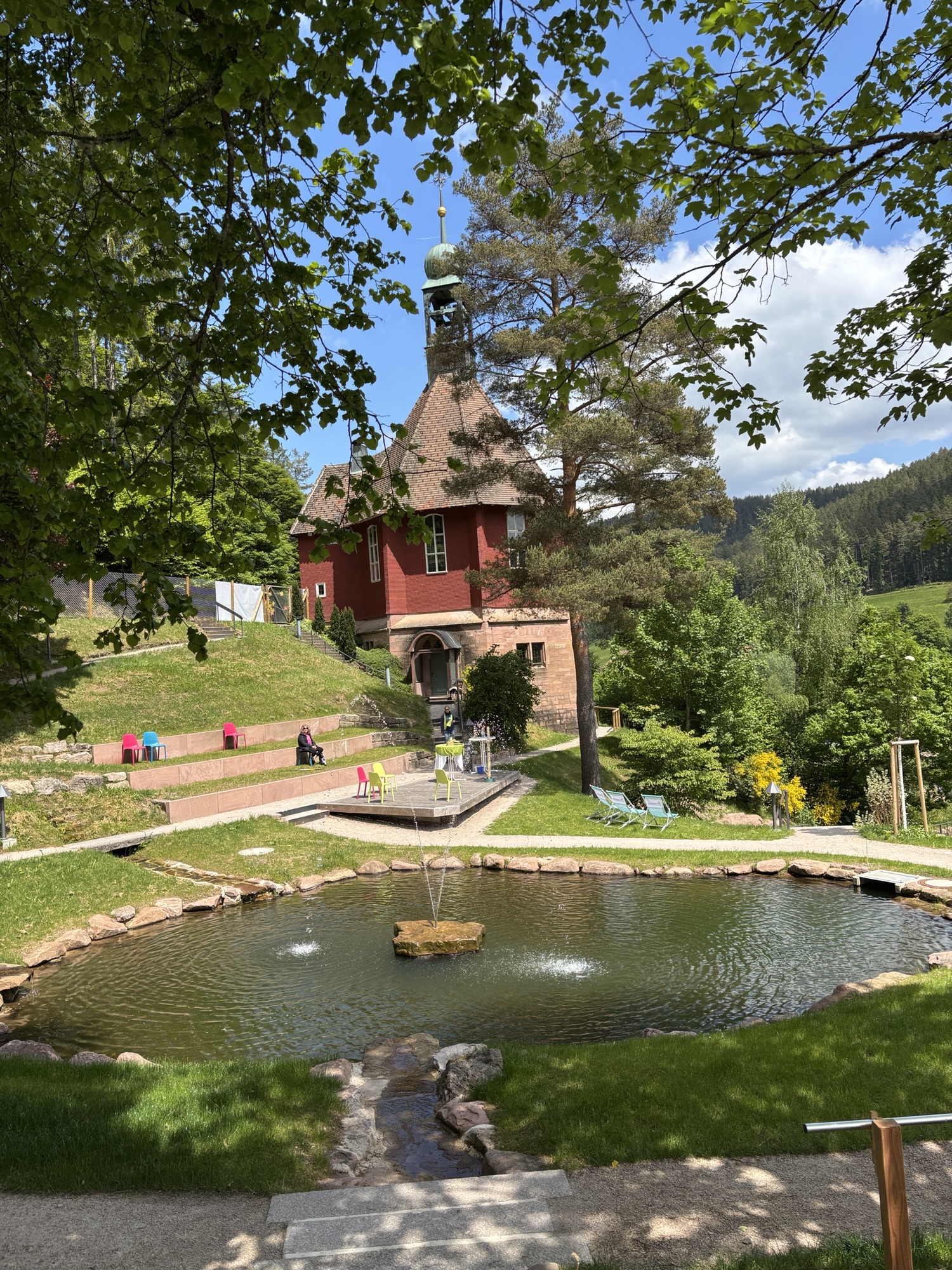 Alternativ gibt es einen wieder 1,5 km langen Weg, der Bergab nicht ganz so beschwerlich ist. Wieder vorbei an idyllischen Landschaften und roten Schuhen. Eigentlich ist der Besuch dieser Gartenschau mehr eine Schwarzwaldwanderung. Mit dem Wissen und gut vorbereitet kann aber auch sie absolut genossen werden.