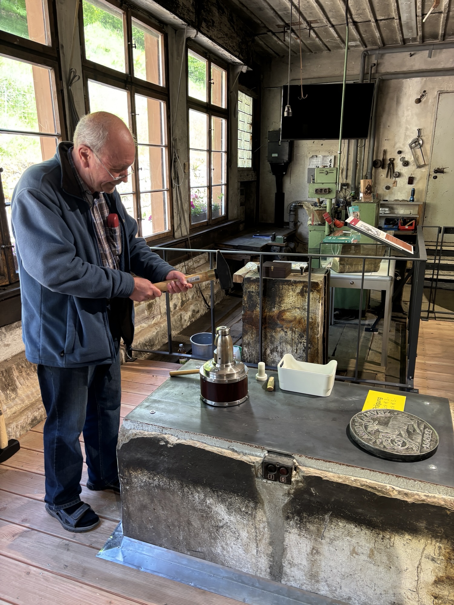 Weiter geht es zum Xentrum – dem Zentrum des Tal-X. Hier finden sich die Michaelskapelle, das große Veranstaltungszelt und für mich eine große Überraschung. Denn hier produziert direkt neben dem Schaugelände das Unternehmen SHW-Fire Gartenwerkzeuge. Die geschmiedeten Metallteile werden alle vor Ort produziert. In einer großen Scheune auf dem Gelände wird das Sortiment vorgestellt.