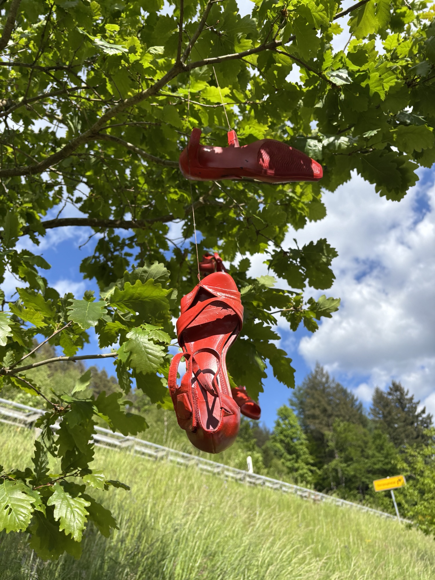 Die „roten Schuhe“ ist eines von mehreren Bürgerprojekten, welche zur Tal-X Schau von Ortsansässigen realisiert wurden. Dieses künstlerische Gemeinschaftsprojekte haben ein wichtiges Ziel voll erreicht: Die Bewohner des Tales in die Landsschaftsschau mit einzubeziehen und Freude zu bereiten.
