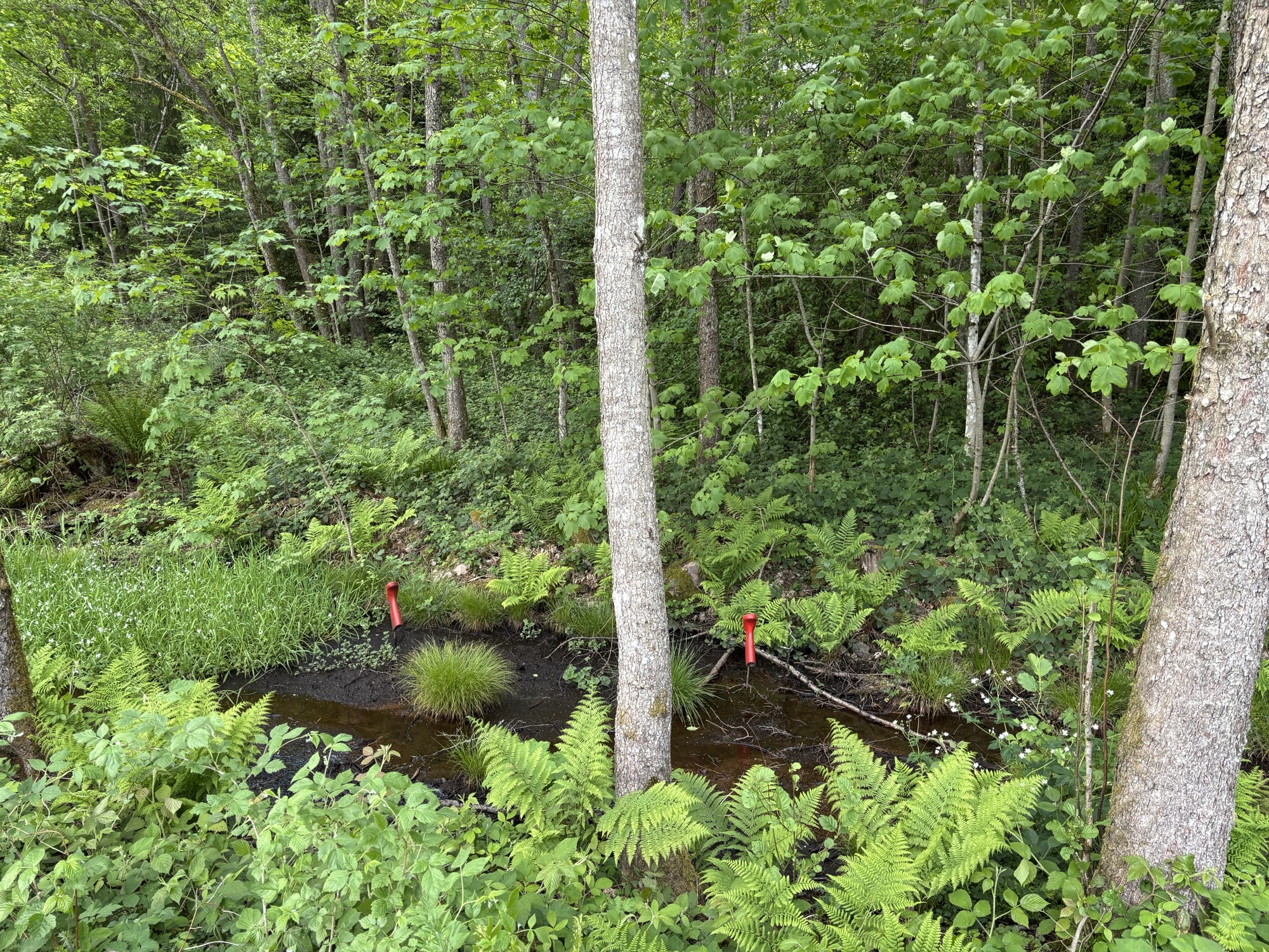 Entlang an Wiesen und Teichlandschaften, immer begleitet von roten Schuhen, geht es Richtung Finkenwiese. Vorher noch der Schauraum des Nabu, der das Thema Fledermäuse im Schwarzwald vorstellt.