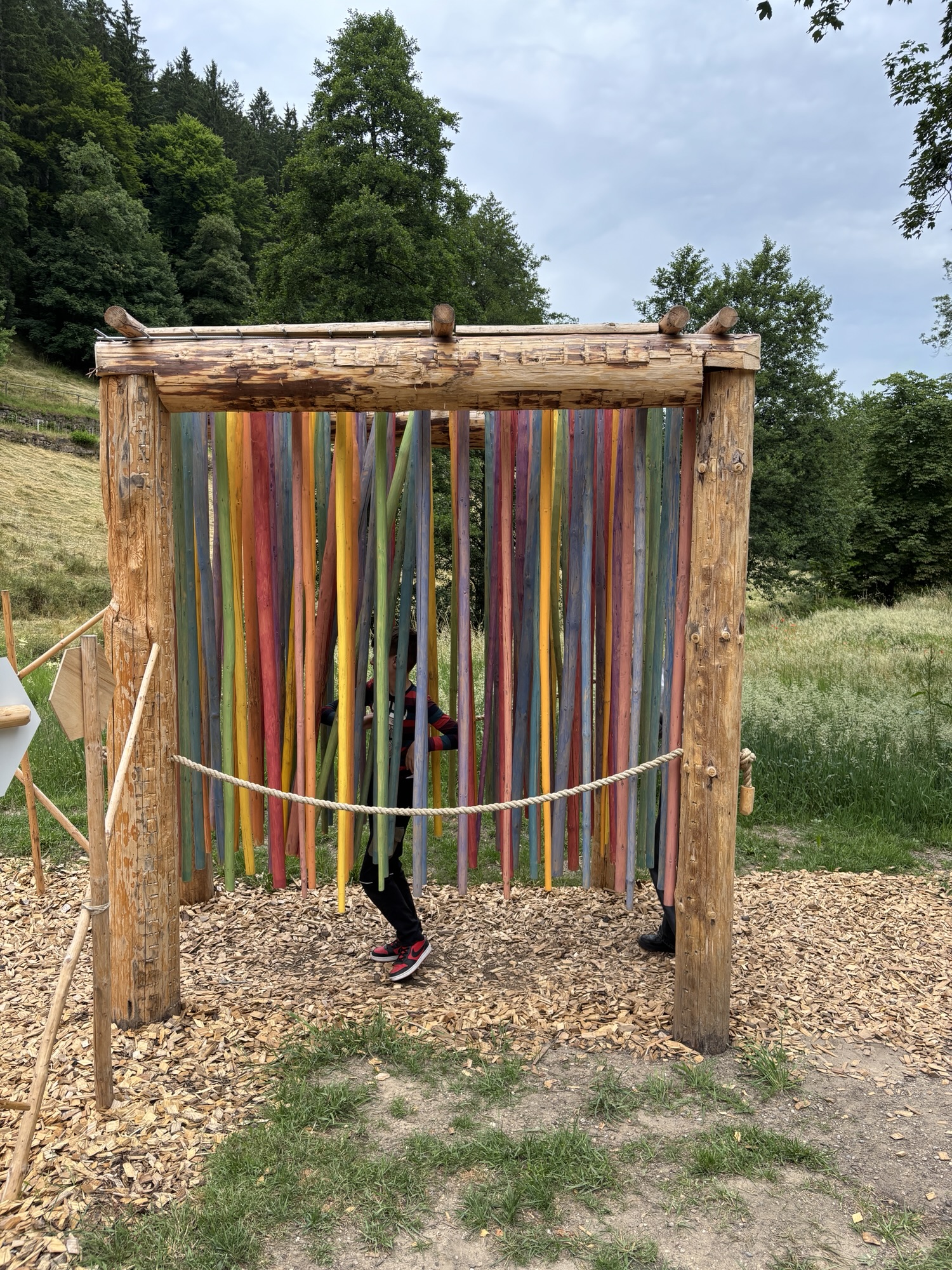 Ganz oben, am Haupteingang zum Tal-X, befindet sich beim Bärenschlössle eine Waldwiese, auf der oft Schafe weiden. Darüber ein krasser Abenteuerspielplatz. Das „Walderlebnis“ lädt zum erkunden und spielen ein. Ein überschatteter Sitzbereich bietet müden Eltern Erholung. Einfach nur toll.