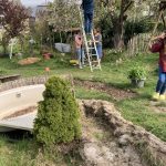 Nun stand alles bereit. Alleine: Die Energie anzufangen fehlte. Erst war es mal wieder zu heiß, dann kam Corona. Ich weiß nicht wie es euch in dieser Zeit ging. Aber mir haben diese Lockdown Phasen immer jeglich Energie geraubt. Es ging oft nur um eine Art geistiges Überleben. Das war bei uns immer gemütliches Sitzen mit einem Gläschen unter dem Weidebogen. Den schweißtreibenden Aushub auch nur anzufangen, einfach nicht machbar. Was wohl die Besucher unseres Gartens beim Tag der offenen Tür 2020 gedacht haben?