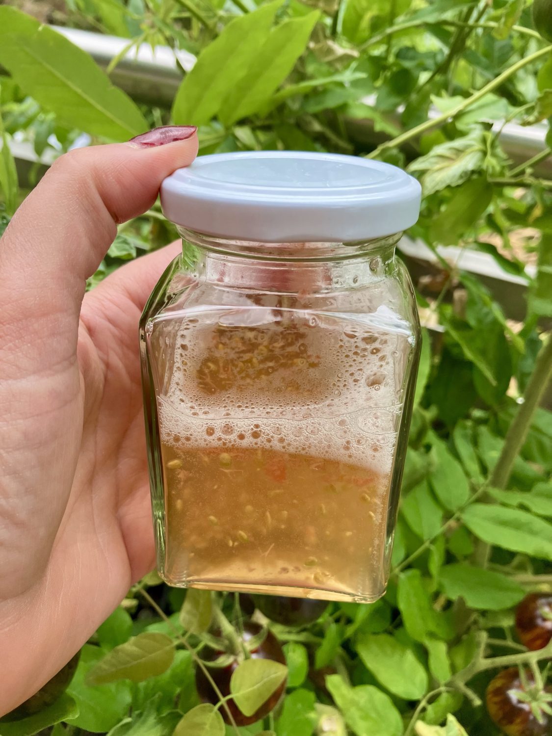 - Zum Säubern die Samen in ein Glas mit Deckel geben, ordentlich wässern und gut durchschütteln.