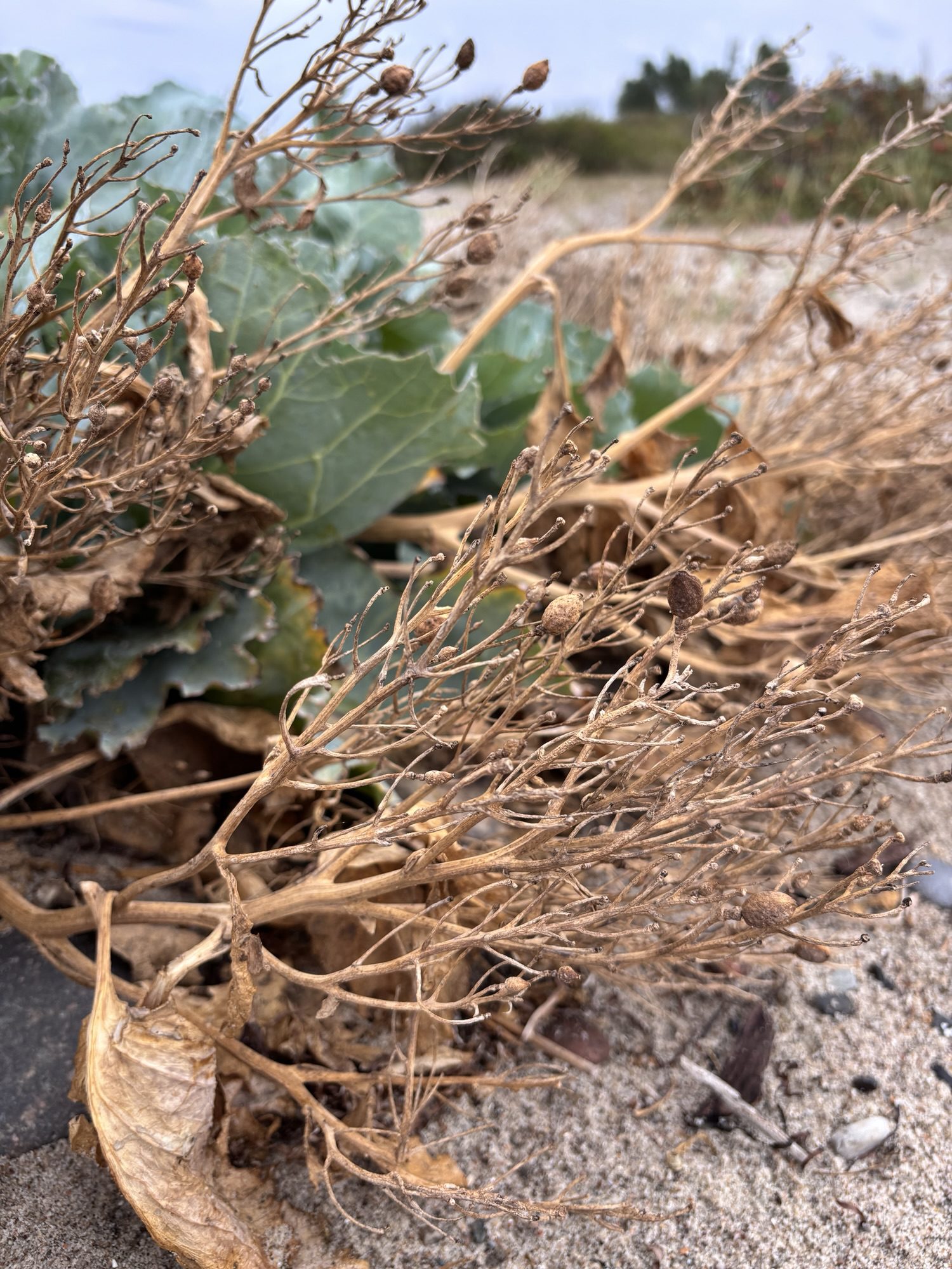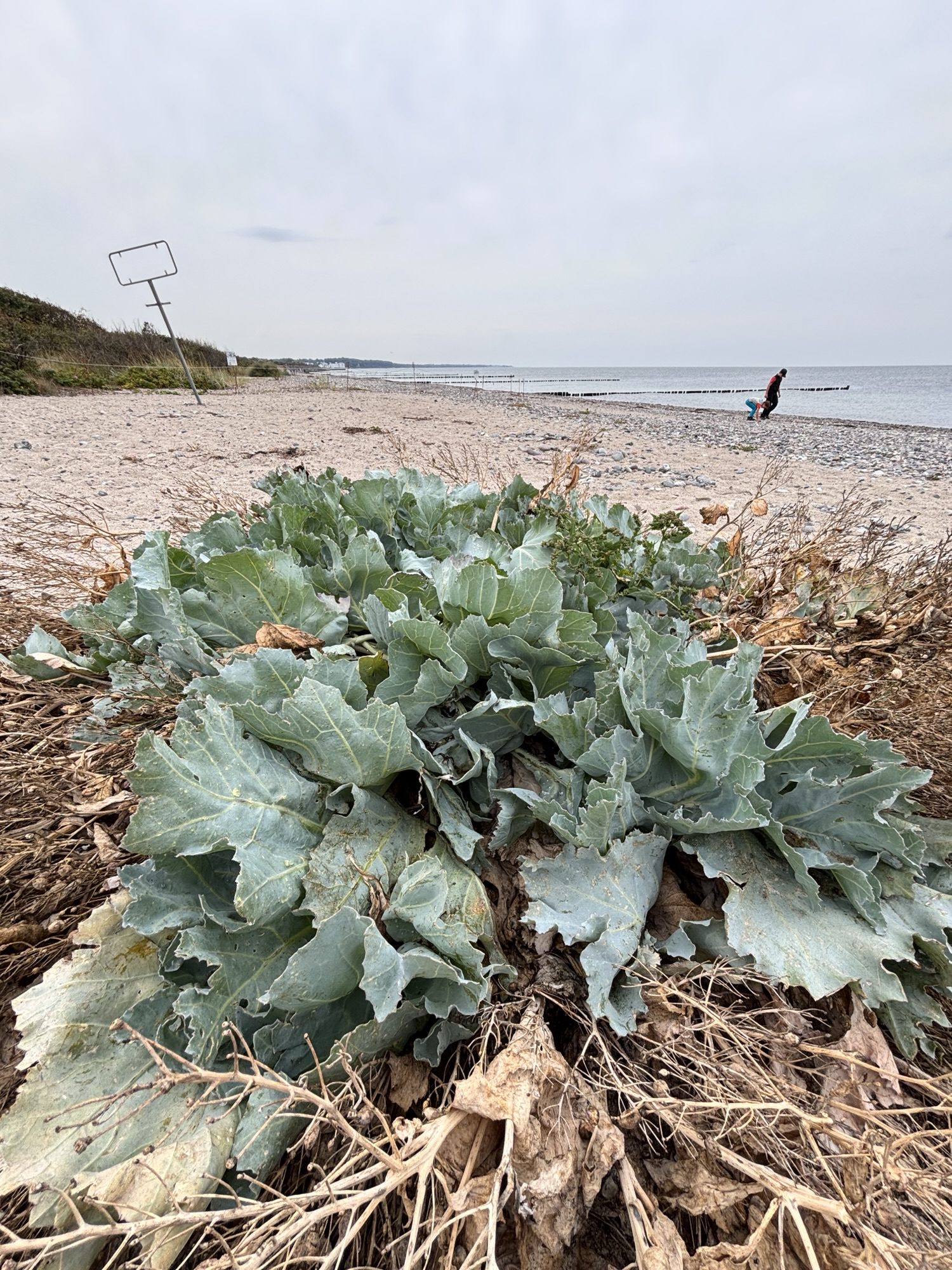 Für mich war der wilde Meerkohl lange so etwas wie ein Einhorn der Küstenpflanzen. Viel darüber gehört, aber nie wirklich in Echt gesehen. Bis zum Sommer 2025 am Strand an der Ostsee. Wir spazierten an einem kühlen Augusttag an einem verwilderten Badestrand und auf einmal waren sie da: Mehrere Meerkohl Inseln, mitten im Sand, am Strand.