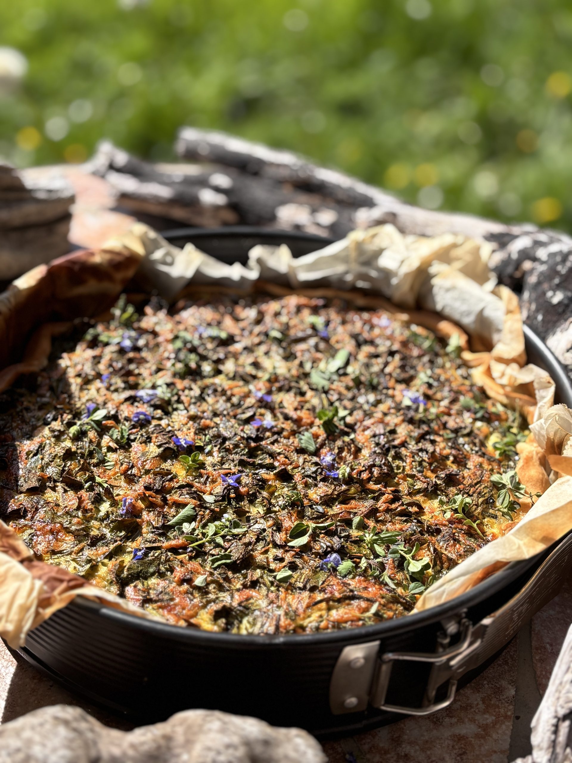 Zu Ostern machen wir gerne ein Picknick. Fester Bestandteil sind Karotten im Blätterteig. Dazu ein Kräuterjoghurt. Dieses Jahr mache ich diesen Kräuterjoghurt mit essbaren Blüten, welche ich beim morgendlichen Spaziergang durch meinen Ostergarten sammle.