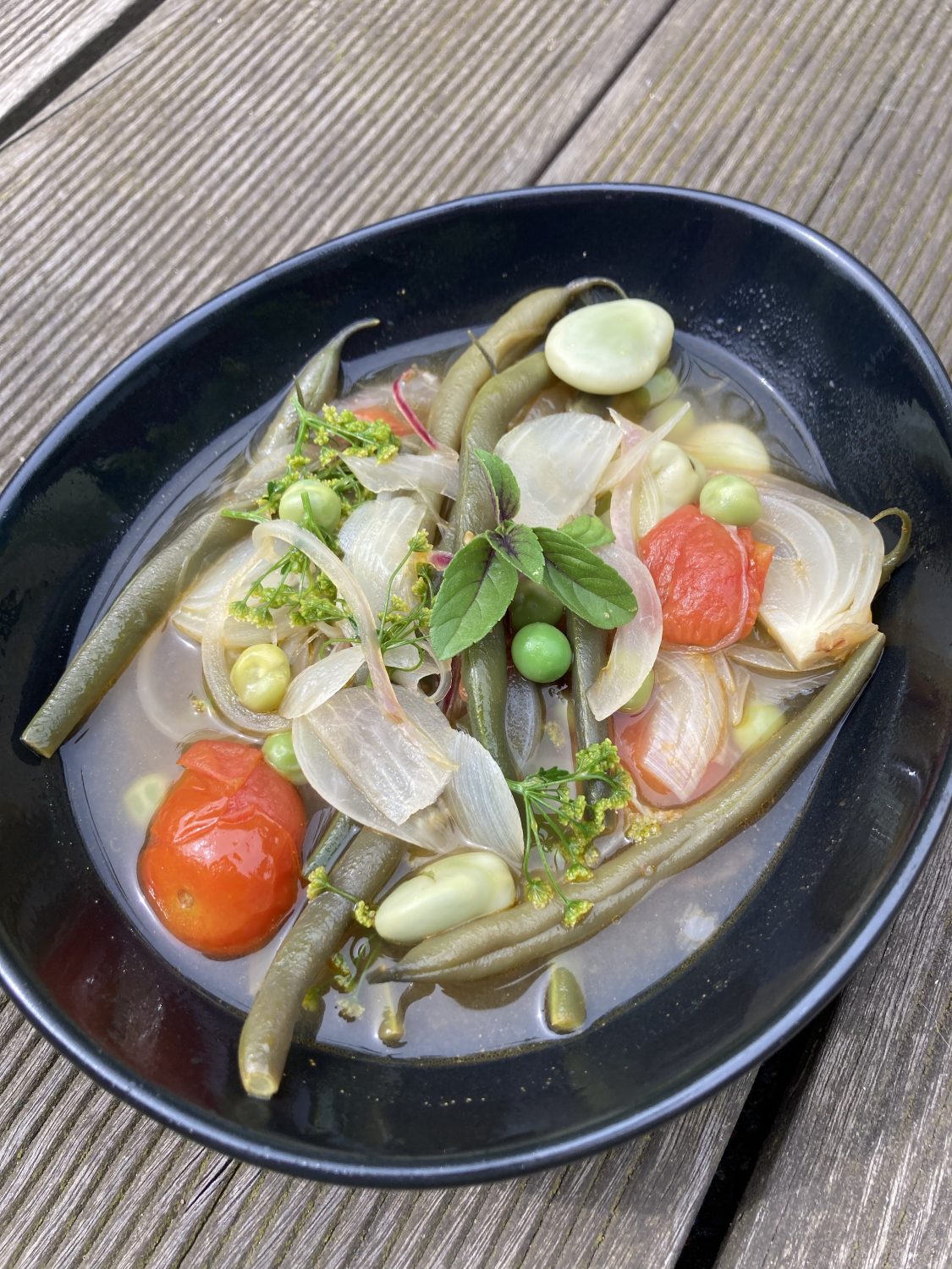 - Im Topf Zwiebeln und Knoblauch im Olivenöl anbraten. Nach und nach alle Gemüsesorten mit dazu geben. Nochmal kurz anschwitzen und dann mit Wasser auffüllen.