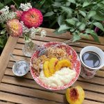 Buchweizenflocken, Crumble, Dessert, Haferflocken, Lavendel, Nachtisch, Obst, Pfirsich, selber backen, Tea Time