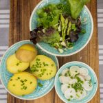 Den Ingwer frisch darüber reiben, mit einer feinen Reibe. Apfelessig und den klein geschnittenen Schnittlauch dazu geben. Der Salat sollte mindestens eine halbe Stunde ziehen, damit sich die Aromen gut verbinden können.